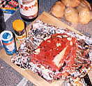 8.さらにジャガイモをそのまま食するのもうまいが、サブメニューとして マッシュポテトを作ってみましょう。DOで蒸したジャガイモをボールに入れ フォークなどを使ってつぶす、この際皮のままのジャガイモがいい バターと牛乳少々、塩コショウを混ぜ練りこむ。 これに鍋底に残ったうまみのエキスにバター、小麦粉を入れ とろみを付けたグレービーソースをスライスした肉と野菜、マッシュポテト にたっぷりかけ食すと最高!まるでカウボーイになった気分を味わえるでしょう。 |