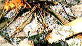 | レシピ | 1.米を洗っておく めんつゆは薄目に割る 2.分量は飯ごうやコッヘルで計ってから竹に入れると便利 3.竹は1節分カットした物を用意。 4.米、だし汁、タケノコを刻んだ物、山菜を全部入れよく混ぜ合わせる 5.アルミホイルを竹の口にかぶせる 6.たき火の近くに立てかける。途中竹を回して全体に熱が行くように 火は強火 7.吹いてきたら火を調整。火力を弱くするか、竹を遠ざける。 8.アルミホイルの部分をスプーンなどで触ってみて、ぐつぐつしなくなったら 炊きあがってるはず 9.竹を逆さにして10分ほど蒸らすとふっくらとする 10.竹をナタなどで縦に割るとそのまま食べられる 竹の香りが付いてなかなかいいです。 *水加減の失敗などにより芯が残った場合日本酒を入れて もう一度火にかけると復活する。これは普通の炊飯の時も使える ので覚えておくと便利 |
