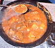 4.DOの水分をふき取り火にかけオリーブオイルを入れ熱する。 つぶしたニンニクを入れスライスした玉ねぎをあめ色になるまで炒める オリーブオイルを足し人参、ざく切りの玉ねぎ、牛タンを軽く炒める。 先ほどの煮汁を注ぎ込む。ジャガイモ、デミグラス、ホールトマト ワイン、オレガノこさじ一杯、ローリエ、固形ブイヨンを入れ 沸騰したら最初だけあくを取る。 後はDOに蓋をしてじっくりとごく弱火(おきは少なく)で2時間 以上煮込んで出来上がり。最後に蓋を開け小麦粉を混ぜ とろみを付けるといいですよ。バター少々を入れ出来上がり。 タンが柔らかくて、野菜がとろとろで 思わず笑ってしまうほどうまいですよ。 ガーリックと溶かしバター、バジルを刻んで混ぜた物を DOで焼いたパンに付けて一緒に食べるとほっぺが落ちます。 |