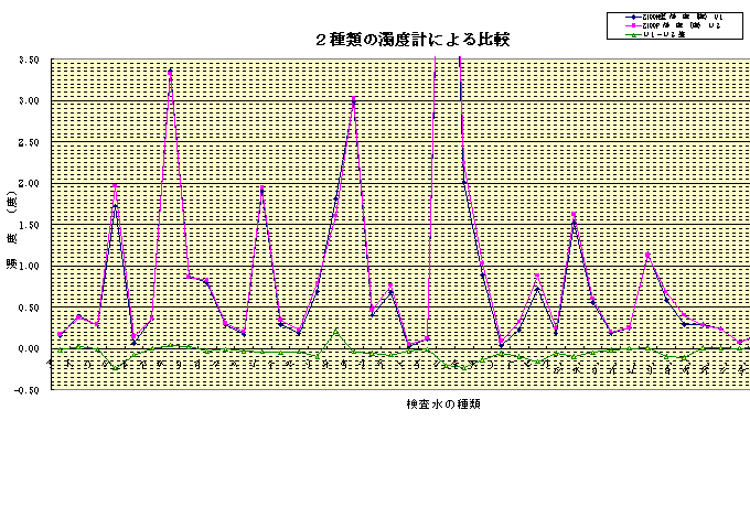 そこで、今回はDの散乱光測定法又は透過散乱法を用いたラボ用濁度計2100N(ハック社)とポータブルな携帯用濁度計2100P型(ハック社)について実際に測定し比較してみることにしました。