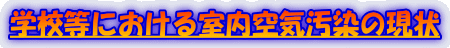 そして、最近、学校環境の中にも建材・ワックス・芳香剤・塗料・教科書等のインキなど様々な化学物質が入り込み児童生徒の健康に障害をきたす例が増えてきたことからも、化学物質をできるだけ抑えた建材や塗料等を使用するよう対策を講じる必要性がでてきました。平成12年6月30日の厚生省生活衛生局長通知で室内空気中化学物質の室内濃度指針値及び総揮発性有機化合物の室内濃度暫定目標値が定められたことから平成13年1月29日文部科学省スポーツ・青少年局学校健康教育課長及び同省大臣官房文教施設部施設企画課長より「シックハウス」対策にも配慮した学校保健活動、施設整備を行うよう依頼がされるとともに、「学校環境衛生基準」も見直し作業が進められています。