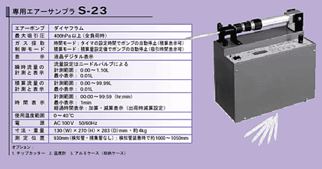 ※エアーサンプラー(流量ポンプ)を別途用意する必要有り |