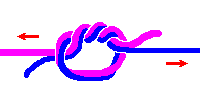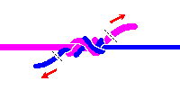 大変簡単な接続方法だが、結節強度はブラッドノットに引けを取らない。 リーダーとティペットが5cmぐらい重なるように持ち・・・ 固結びを1回・・・ 2回。 全部の方向から引っ張って締め、余分を切り落とすのだけれど、1mm程度残して切ること。