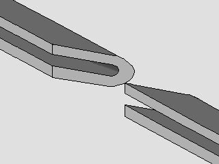 さて、パッキンを作りましょう。 断面が図のような、3mm幅の「U」字型のゴムを用意します。 僕は幅5mmの物しか手に入らなかったので、■の部分を 切り取って使っています。 (幅5mmの物は東急ハンズ三宮店で売っていました) |