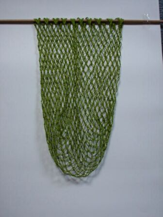 編み始めから編み終わりまで一本の糸で出来ていて、つなぎ目がありません。(@。@) 長い糸を巻き取るために、50cmもの編み針を使ったそうです。 |