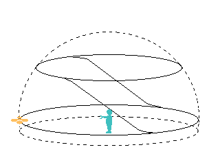 ワイヤーに繋がっているため、飛行機は操縦者を中心に半球面上を飛ぶことになります。