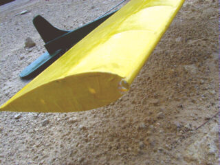 塗装をする前の状態で重心位置を決めたものだから、塗装をしてリンケージ (水平尾翼を動かすためのピアノ線)を付けたら予定よりも10mmほど重心が 後ろになってしまった。
