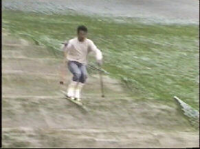 板を担いで、えっちらおっちら登っては滑り降りる・・・