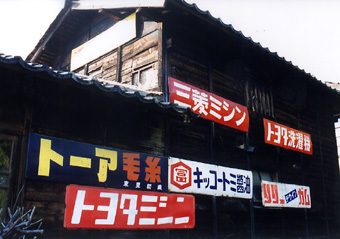 「名産真珠漬」と「リッカーミシン」の看板が貼られています。