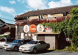 黄色いホーロー看板は1枚だけでも目立ちます。