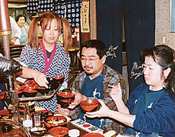 全員わんこそばは初体験! 「まあ酒でも飲みながら‥‥」 「とにかくがんばるぞー!」