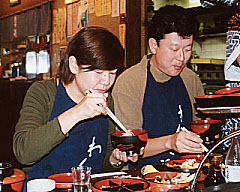 「さあ、喰うぞー!」 「なかなかうまいね」 「まだまだ!」