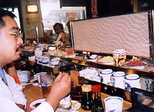 島武水産で回転寿司を食べる     「どれにしようかな」