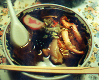 | 日本最北端の町「稚内」で食べたラーメン。 かにの他につぶ貝やコンブなど海の幸が いっぱいだ。 北海道のイラストかまぼこにも注目! | |