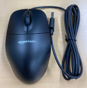 アマゾンで販売されているAmazon basicsブランドの有線マウスです。ボールマウスの頃は、メーカーPCにMicrosoftやLogicoolのマウスが付属していたので、「標準マウス」を基準として他のモデルを比較できましたが、光学式になって以降、様々なブランドが乱立するようになり、特に近年では高級なゲーミングマウスか、逆にマウスなら何でもいい人向けの激安品の両極端になり、標準的なマウスが存在しなくなりました。