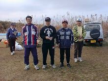 | ラバーシンカー,第2種目 優勝者:遠藤寿(東京・コスモ) −優勝なれして余裕ですね− 「いや全然ですよ,練習もやってないし。ラバーは全然やってません。30号のほうは練習してますが,年なのであまり寒い時期は控え気味にしています。暖かくなったらまた体造りから始めようと思ってます。60だからといってまだ若い人には負けてられませんよ!」 −第2種目ではいつもの振りと違うように見えたんですが− 「横振りにして低く投げてみたんだよね。」 −ということは,投げ分けている?− 「アゲンストの時は低く投げるように,フォローの時は縦に振って高い弾を打つようにしてます。投げ分けは試合でやるんではなく。十分練習してからやった方がいいですね。これだけ向かい風が吹いてたら低い弾道でないとだめですから。」 第1種目 優勝者:藤地隆夫(茨城・バトル) −ダントツでしたね。練習はされてたんでしょ?− 「全然,竿を替えただけです。この前は硬い竿だったんで腰を痛めちゃってね。」 −フォローだったら160mは出たでしょう?− 「いや,それほど糸を巻いてなかったんで。」 −全然練習しないでなんてすごいですね。夜な夜な素振りやってたんでしょう。練習はやってないけど,でもそれだけで勝っちゃうんだからすごいですね。− 「そりゃ20数年やってるからね。たまには勝たしてもらわないと。前回は3Fでしたから。」 第3種目 優勝者:芳賀望(神奈川・コスモ) −チタニウムですか。ずいぶんいいリールをお使いですね?− 「釣りと同じものを使うことにしてますので。」 −3種のキャリアはどのくらいですか?− 「3年目です。平田さんが1種に移ったんで代りにというわけですね。競技人口が少なくてちょっと残念ですけれど。難しいけれど,面白いんですけどね。でも愛知の人達にはかないませんよ。」 −コツみたいなものはあるんですか?− 「一気に力を掛けると切れるんで一定の力で掛けるようにするんです。1種とか3種は距離は出ないけど難しい。奥が深いんではまりますね。」 第4種目 優勝者:高濱芳明(茨城・バトル) −これだけ強い向かい風で軽い15号シンカーでは記録的にきつかったでしょう?− 「結果には大いに満足しています。2月は追い風で第6種目との相関を考えれば190m程度でなければならなかったものが180mそこその記録。今回,第6種目との相関ならば145mとなるところを150m超えましたから。」 −今回,強豪が増えてプレッシャーもあったのでは?− 「筒井さんは2月の振りを思うと飛びそうでしたね。菊地さん,本沢さんあたりが1投目から抜け出したりすると逆転はきついだろうし,5種王者・成岡さんがどれくらい飛ばしてくるか分からない。こんな状況ですから勝つことに対するプレッシャーなくても不安はありました。」 −練習と本番では飛距離が違うような気がしますが。練習で手を抜いてませんか?− 「練習でも本番同様に投げているんですが,なぜか練習ではオーバーキャストされることがありますね。ただ,本番は気持ち的に違っています。高揚していることは確かですから。」 第5種目 優勝者:熊谷義之(千葉・ヤマト) −いつも上位に顔を出していましたが,ついに優勝ですね。− 「5投入ったのがよかった。最初にFするときついし,風もあったりするとさらに焦りますからね。」 −練習はやっておられますか?− 「全然。昨日やろうと思ったけど雨だったし。実釣はやってますけど,実釣ではだんだん柔らかい竿になっていきますね。(倉嶋:そうそう,PEだと結構やわらかくても竿にかかって餌つけてても150〜160くらい飛ぶんだ。柔らかい方が食いもいい)」 −奥さんがいつも一緒にいらっしゃってますが,奥さんもそろそろ出場されては?− 「全然なんです。ファールライン以上飛ばないんで。女性の部門があって参加も数人なら・・・・」 −じゃ今度機会がありましたら是非参加して下さい。− 第6種目 優勝者:長島吉孝(神奈川・コスモ) −ダイワの新しいリールZ45Cですね?− 「410g従来品より95g軽くていいですね。」 −最期までもつれてたようですが?− 「2Fからでしたからね。でもこれがおもしろいんですよ。」 −緊張のなかでどれだけのものをだせるかという事ですね。− −2月の記録会に引き続き2連勝。記録会の時は200mオーバーを連発してましてたが,今回の風は厳しかったでしょう?− 「今回は向かい風だったので,記録的にはこんなもんでしょう。」 −弾の高さとかはその日の状況に応じて変えておられるんですか? 「投げ分けてます。今日のような日は低い弾道を出すようにしてます。弾道の調整は目線で調整します。あんまり難しいことではなく,低い弾と高い弾を投げ分けてる訳です。」 −特別なトレーニング法があればお教え下さい。例えば筋トレなんかは?− 「最近は忙しくなったんであまりやってませんけど。それよりも体の柔軟性が重要だと思います。 瞬発力というのは体の柔らかさから生まれるものなので,体が固くなっちゃうとどうも調子が悪くなる。ここ2〜3年おかしかったのは柔