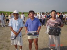 | ○ | 所感 昨年同様,梅雨明け直後に行われることになったJSCF大会。あまりの暑さは選手たちの体力を消耗させることにもなったが,多くの参加者のもと,大会は大盛況に開催された。投てきグループは3つに分けられ,G1(第1・5種目),G2(第2・3種目),G3(第4・6種目)により競技が行われ,記録的には,時間とともに追い風が増し,特にG2の後半からは強い追い風により,目を見張る好記録が連発された。 風的には恵まれたものの,コートに関しては昨年以上に左側が狭くなるという制限が生じ,左投げのキャスターにとっては若干不利なものとなってしまった。 各競技種目を総括すると, 第1種目では松原(JSCF)が,第3種目では土橋(NSC)それぞれ順当勝ちを納めた。第2種目では長島(JSCF)が遠藤(JSCF)の牙城を崩し,第4種目では,杉田(全日本),木村(NSC),本沢(JSCF)の順位で3団体が名を連ねた。第5種目は,立川(全日本)が大木(JSCF),宇佐美(JSCF)を押さえ1位となった。第6種目は草野(全日本)が豪快の言葉そのもののキャスティングを見せ優勝した。 なお,今大会ではシンカーの確認を早めるとともに火災防止のため,発煙筒に替わり昨年来よりテスト使用してきた発信器(ビーパー)を正式採用した。 |