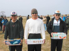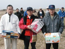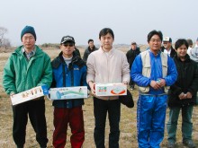 | ・ | ST 鬼沢(茨城一般)がニューロッドに手こずりながらもかろうじて3本をコートに入れ1位となった。萱内(茨城釣遊),小野瀬(茨城バトル)にあっては今ひとつ飛距離が伸びず,鬼沢にプレッシャーをかけるには至らなかった。惜しむらくは冨永(東京ビックワン)である。最終投で140mそこそこの飛距離でも優勝できたはずなのだが,わずか1mほどコートをはずし涙をのんだ。 最長:鬼沢 |