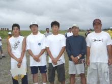 | ○ | 所感 毎年7月猛暑の中行われるはずのJSCFジャパンオープンだが、今年も昨年同様、入道雲がいたる所から発生し、雨、雷鳴、晴れ、突風という目まぐるしく変わるコンディションの中、全国各地から選りすぐられたキャスターがここ天竜川決戦に臨むべく集結し、盛大に開催された。競技進行はG1(1種、2種、3種) G2(4種) G3(5種、6種)の順で行われ、朝から目まぐるしく変わる空模様での開始となったG1では雨や雷鳴により中断という場面が数回あり、G2では雨に加えて突風、暴れ風、G3が進行される午後になって初めて天気も回復し、高記録が期待される絶好の追い風コンディションとなった。 1種目では3投目に171.42mという素晴らしい投擲を決めた松原選手(JSCF)が僅差で競り勝った。 2種目はミスター2種目遠藤選手(JSCF)が雨が降ろうが雷が落ちようが全く動じない安定した投擲で、見事な勝ち名乗りを上げた。 3種目もいつもながらのレベルの高い戦いの中、2投目以降全て140m以上というハイアベレージを叩き出した星選手(JSCF)が見事な勝利を収めた。 4種目は目まぐるしく変わるウインドコンディションではあったが、吉川選手(NSC)が非常に高い技術力を駆使し、BORON50号プロトタイプのバットセクションをひん曲げ、最長207.67mという4種とは思えない近年に無い記録を叩き出し優勝した。 5種目は酒井選手(東海大学)がパワーとロッドワークのうまさを兼ね備えた投擲で3本とも200オーバーを揃え、村岡選手(AJSCF)を押さえ込んだ。 6種目は久々の競技会出場となった草野選手(AJSCF)が3投目に見せた246.23mというおそらくSC史上後々まで語り告がれるであろうとてつもない記録を叩き出し、その場にいる選手たちから拍手が送られるという光景の中優勝を収めた。 |