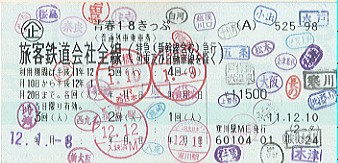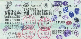 | 下車印は 網干 安房鴨川 秋葉原 大船 勝浦 上総亀山 東京 鶴舞 千種 広島 三段峡 三原 岡山 可部 呉 竹原 尾道 吉原 徳山 加計 厚狭 名古屋 清水 |