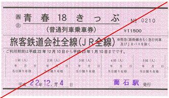 下車印は 岩見沢 弘前 鷹ノ巣 青森 函館 旭川 小樽 18きっぷの日付で20日が2回押されているのは乗った駅で駅員がいなかったため。 車内検札の時そう言ったら2日分押した。 |