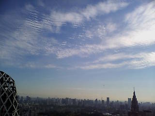 愛知環状鉄道の車窓から初冬の空        新宿センタービルから初冬の空         上野公園の青空と銀杏の木々