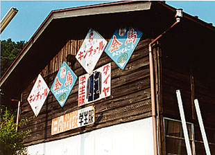 黄色いホーロー看板は1枚だけでも目立ちます。