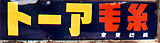 トーア毛糸<撮影日> 1989年5月 <撮影場所> 山口県萩市 毛糸の看板では全国的によく見かける定番看板です。 「毛糸」の文字の下には「東亜紡織」と書かれています。 | |