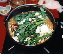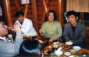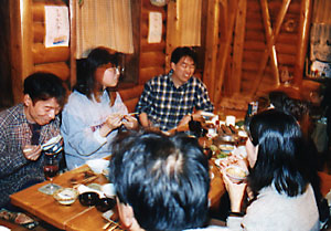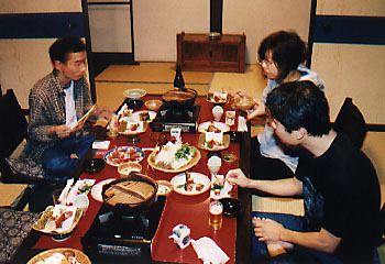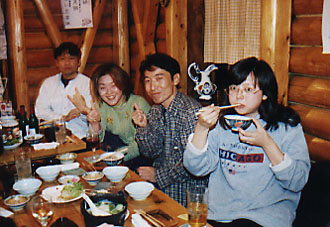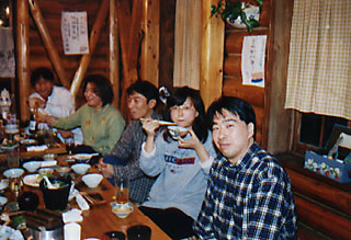温泉から上がり、待望の猪鍋を食べる。「いただきまーす!」