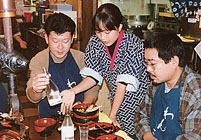 全員わんこそばは初体験! 「まあ酒でも飲みながら‥‥」 「とにかくがんばるぞー!」