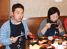 「さあ、喰うぞー!」 「なかなかうまいね」 「まだまだ!」