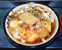 | 名古屋駅のホームにあるきしめんスタンド。 手軽にきしめんを味わえる。 どっさりのった鰹の削り節が嬉しい。 | |