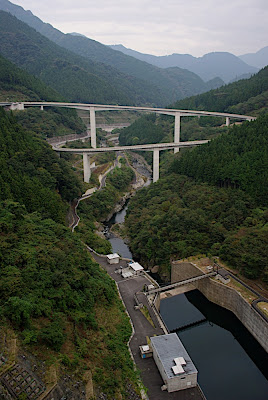 ダムからはループ橋が見渡すことができる。人工の巨大構造物の共演だ。