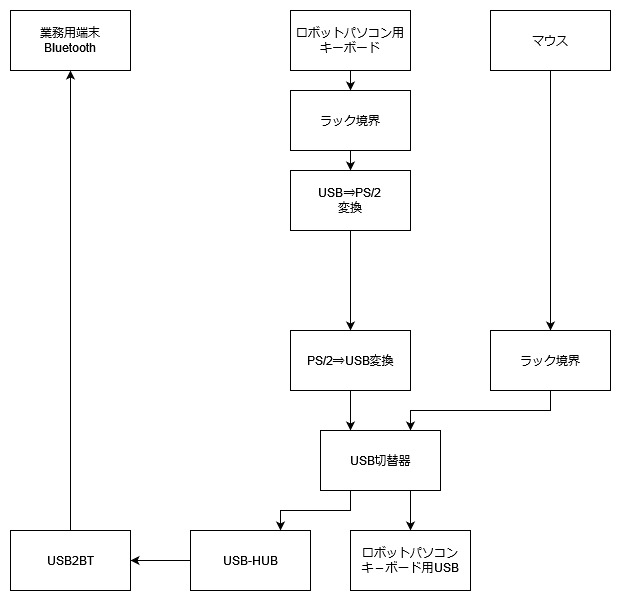 ・これらを組み合わせる事で有線のマウスをロボットパソコンと共用しながら