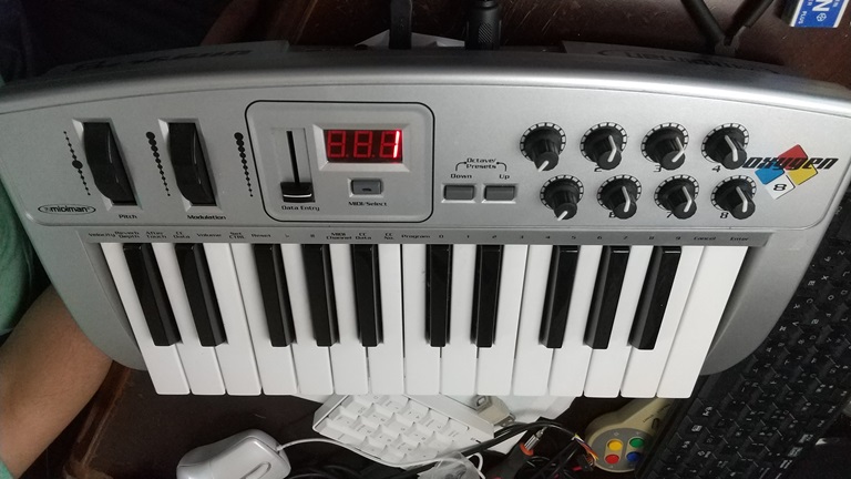 ・尚、机の上には音楽用のMIDIキーボードが置いてあり、このMIDIキーボードに対しては