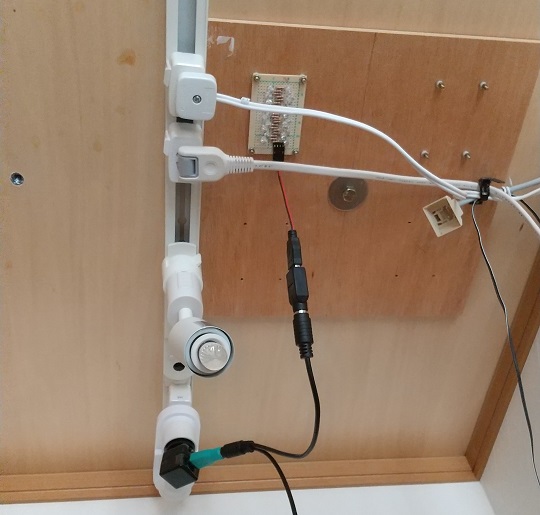 ・ライティングダクトを部屋の天井に2本配置しており、常時通電させている。