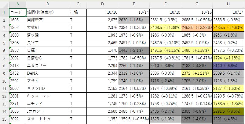 [17] KIkabu(itiran):多数銘柄を一覧表示し上昇率により色付けVer5.41(2025/10/19)