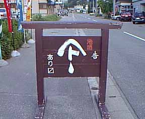 小安峡温泉街で不思議な看板を見つけた。土産屋の看板で、これで「地酒やまとしづくあります」と読むのだそうだ。やまとしづくという酒は生産量が少なく、地元でしか手に入らないということなので、一本買ってみることにする。…が、冷蔵ケースにはやまとしづくが一本も残っていない。しょうがないので、店頭に見本として並んでいる最後の一本をもらった。もちろん今夜の宴を飾るために‥‥。
