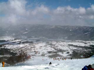 | 白馬の魅力のひとつに、町並みを見下ろしたときのきれいさがあげられるのではないだろうか? 頂上から滑ってくると、街に飛び出すかのような錯覚すら覚えるそのゲレンデが好きです。 うさぎ平、黒菱等、大きなコブコブゲレンデもあり、ここはまさにスキーの聖地。上級者の人が多くいて、自分の勉強にもなります。 |