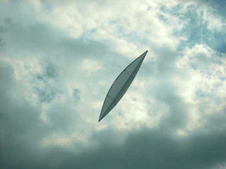 左上の写真、凧のようにも見えますが、これはフータンの一種です。傘のような構造をしていて、揚げ糸を凧に向かって上ってゆきます。 上りきったところで風圧で閉じるのですが、これは閉じるときに紙ふぶきを散らすことができます。 左下は閉じた直後です。 このフータン、デザインはふくら雀ですが、揚げている凧もふくら雀でした。同じデザインで大と小。親子の雀みたいにも見えました。 |