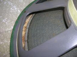 4 コーン紙に残ったエッジはフレームの裏より指で取り去り、仕上げは溶剤を付けた綿棒で丁寧に除去する