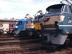 入場料金200円を払って構内に入ると、いつもはEF65か66、81、200しかいない留置線にカラフルな機関車が並んでいた。真ん中の見慣ぬピカピカの電機は最新鋭のEF210だ。