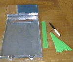 いる。茶箱の内面に貼ってある亜鉛板と同種な点字紙を2枚縦に並べた