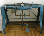 パーキンス方式だが、相手が金属板であるから、右足でペダルを踏み印字し