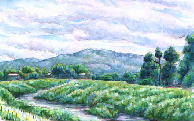 はい、そのまま「水彩画」です。タイトルは、原画に一部塗り残した所が