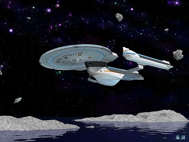 背景の宇宙は宇宙描画専用のシェアウェアで、浮かんでいる小惑星はDOS