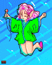 ちょっとだけまじかる☆ (RIOママのための極めて日常的な春の朝の風景) 400*640,16色 使用機材:PC-9801RX,GT-1000,KiD98 作成:92.10 |
