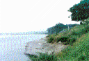 イギリス海岸(花巻市・北上川河原) 河原に泥岩層が顔をのぞかせていることから賢治が命名。賢治が教師時代に生徒達と度々訪れた。その様子は作品「イギリス海岸」にも記されている。 |