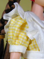 エプロンのレースがきれいなカーブを描いています。 このサイズでピンタックを入れるのは大変そう......。 |