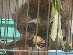 | 観 察 | 眠のおしりはずいぶん乾いてきた。童もようやく乾きはじめたのでしばらくこのまま続けていこう。 今日はセンターに連れていったので、みんなに珍しがられ、愛想をふりまいていたのでちょっと疲れたかもしれない。野生のサクランボをはじめ、いろいろなくだものをたくさん食べた。そのため眠はミルクが少なかった。しかし、童の方はまだ離乳食は少なく、ミルクが多い。 排泄させるとき、いつも右手の同じ場所にしがみついてくるが、その場所がはれあがり、ちょっと触れられただけでも飛び上がるほど痛むようになってしまった。しかたなく、排泄させるときは、手にサポーターをはめることにする。 |